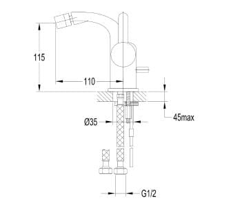 Bateria bidetowa 13,5cm czarny półmat,DARLING