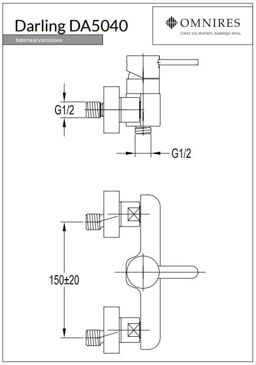 Bateria prysznicowa ścienna czarny półmat,DARLING