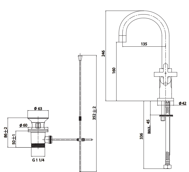 Zasięg wylewki: 13,5 cm