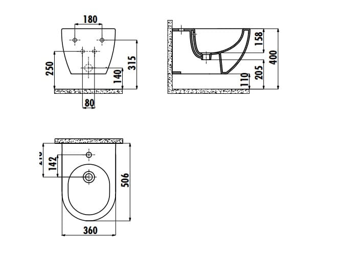 Bidet podwieszany 36x51cm CREAVIT, czarny mat