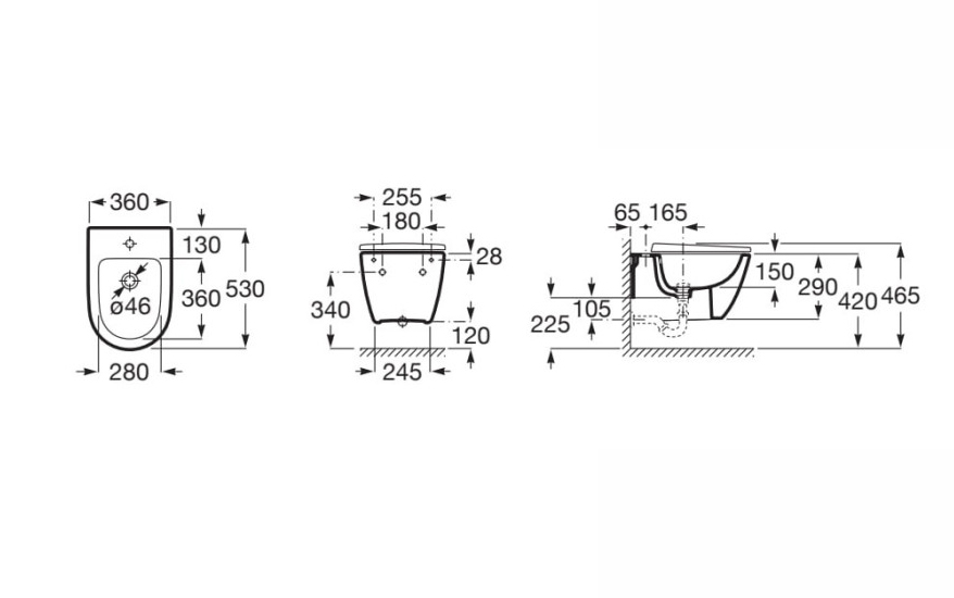 Bidet z powłoką Supraglaze do montaż na stelażu lub do ściany 36x29x53cm ROCA ONA zestaw montażowy w komplecie, biały
