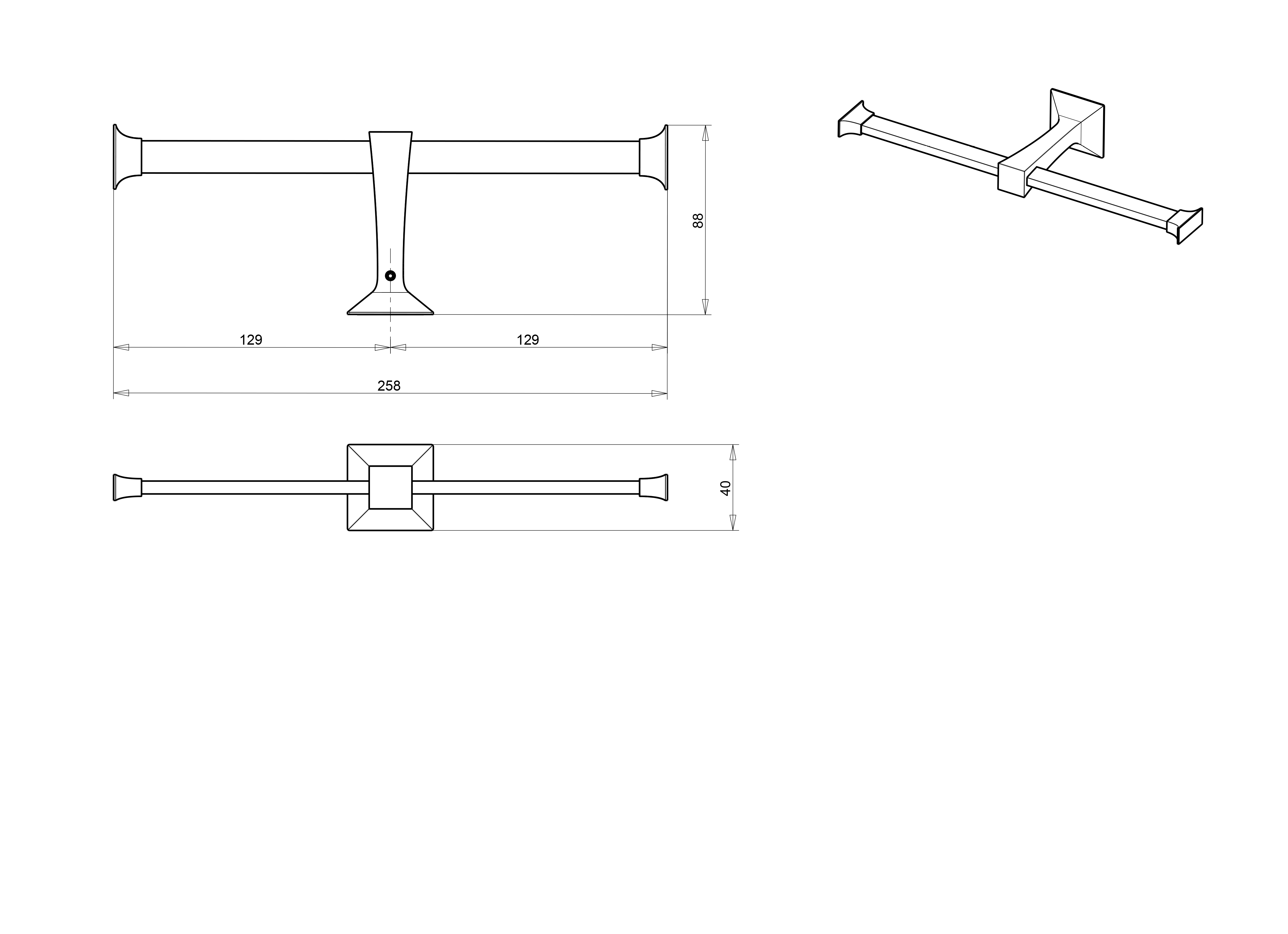 FIRENZE wieszak na papier toaletowy podwójny, 258x40x88 mm mosiądz+chrom