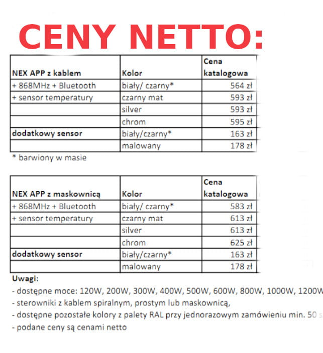 Grzałka BIAŁA elektr. 120-1200 W do grzejników+ INTELIGENTNY SYSTEM NEX/strong