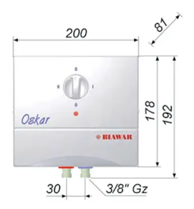 Ogrzewacz OSKAR przeznaczony jest do podgrzewania wody dla potrzeb sanitarnych. Może być instalowany wszędzie tam, gdzie jest doprowadzenie wody i energii elektrycznej. Nie może być umieszczony w miejscu, gdzie temperatura spada poniżej 0°C. Jest bardzo ekonomiczny w użytkowaniu ze względu na bardzo krótki czas rozgrzewu i minimalne straty energii elektrycznej. Posiada pokrętło do dwustopniowej regulacji mocy (3,5 i 5,5 kW).