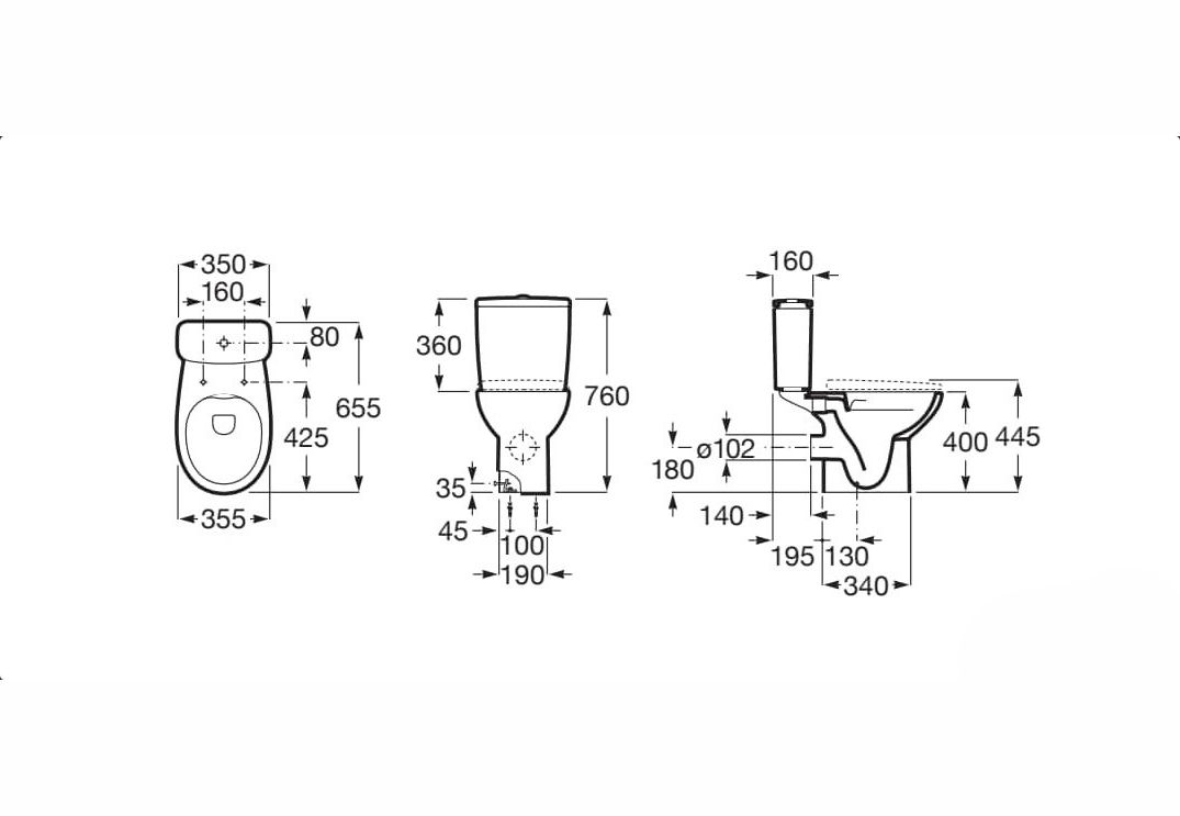 Kompakt WC 65x76x35 cm odpływ poziomy ROCA Victoria Rimless zestaw montażowy w komplecie, Komplet, biały