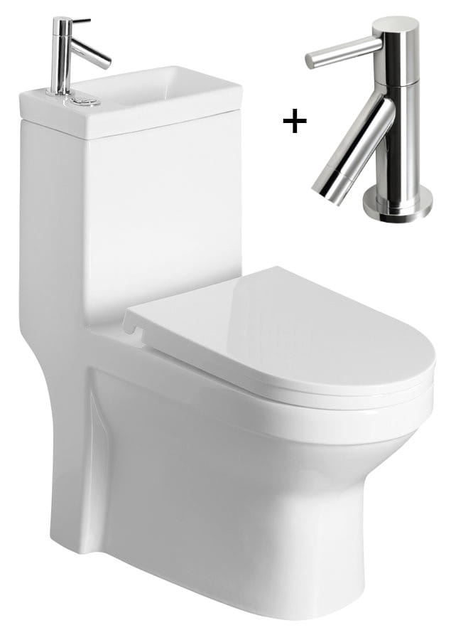 Kompakt wc z umywalką 36,5x78x72cm i baterią chrom i deską, biały Alcatraz