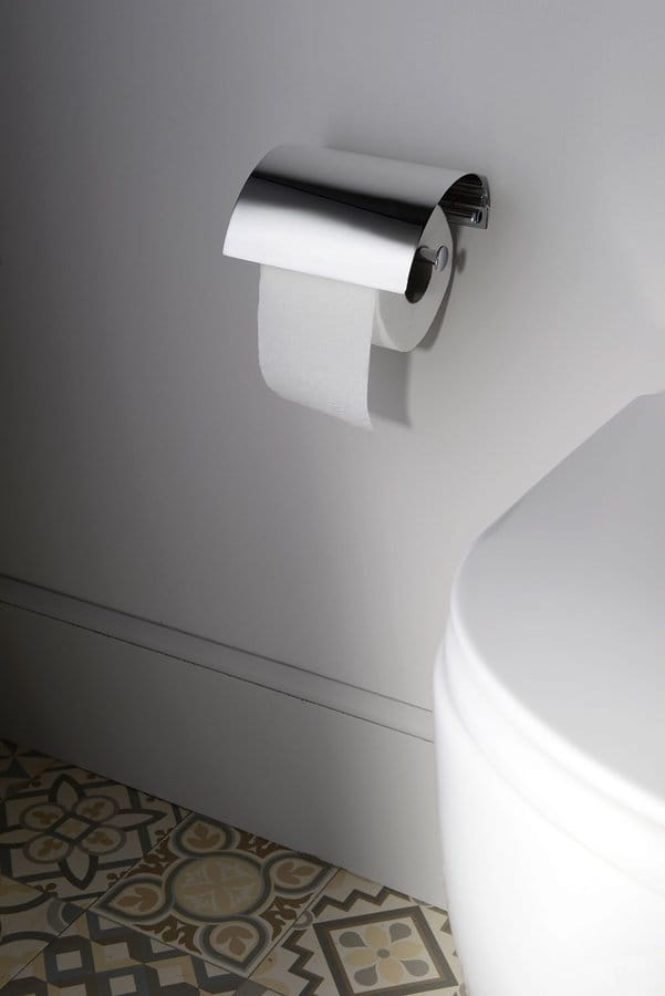 Pojedynczy uchwyt na papier toaletowy z klapką.