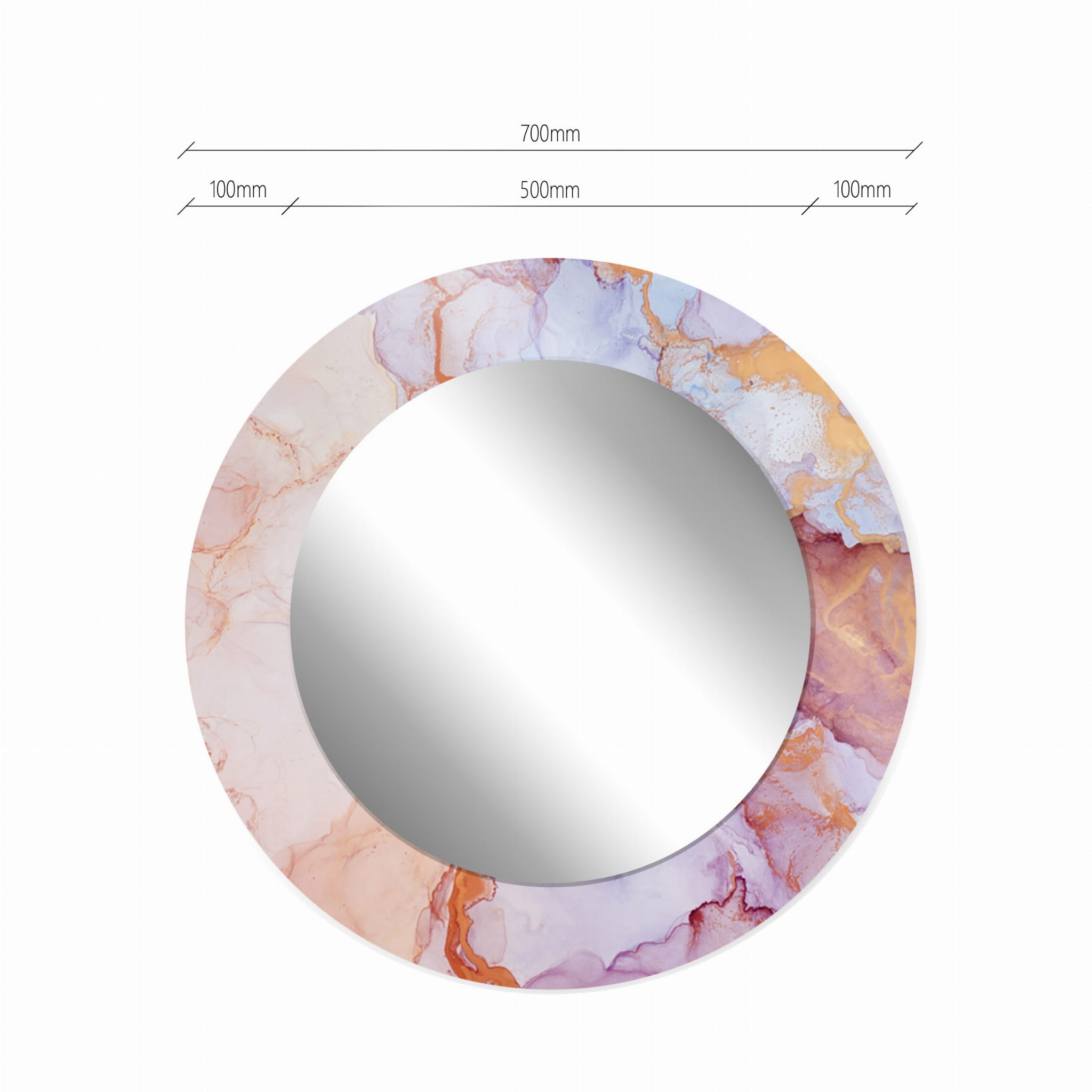 Szczegóły: wymiary: fi 70 cm (okrąg z grafiką fi 70 cm, lustro fi 50 cm),