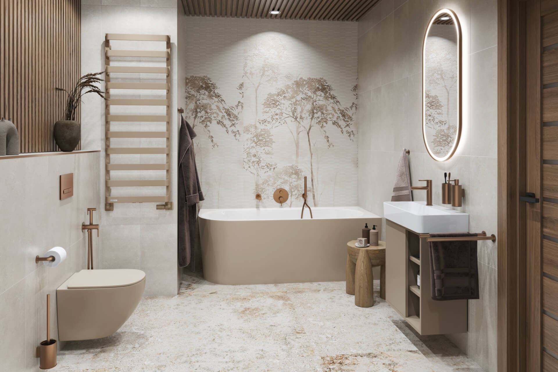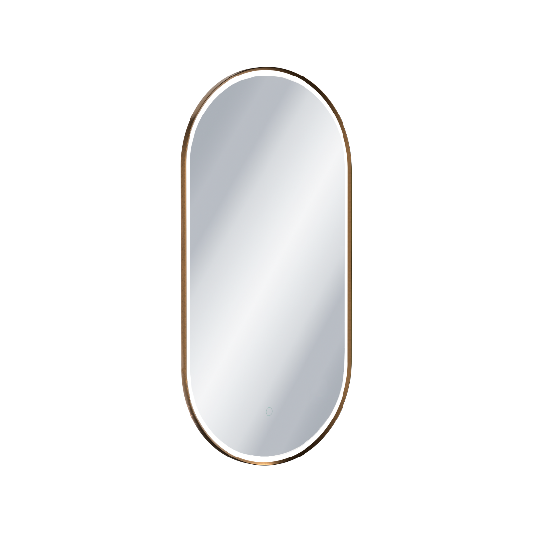 Lustro łazienkowe 100×50 cm owalne/3000 - 6000 K , oświetlenie LED mata grzewcza, miedziany szczotkowany