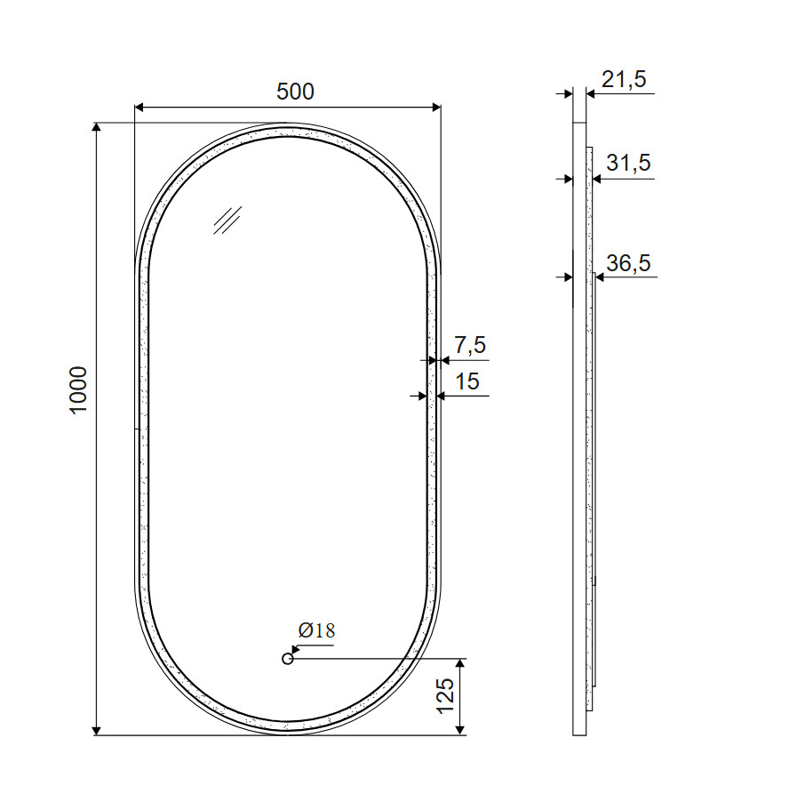 Pod aluminiową ramą, z tyłu lustra znajduje się akrylowa osłona, gwarantująca delikatne, jednolite rozproszenie światła, bez widocznych na ścianie pojedynczych punktów diod LED.