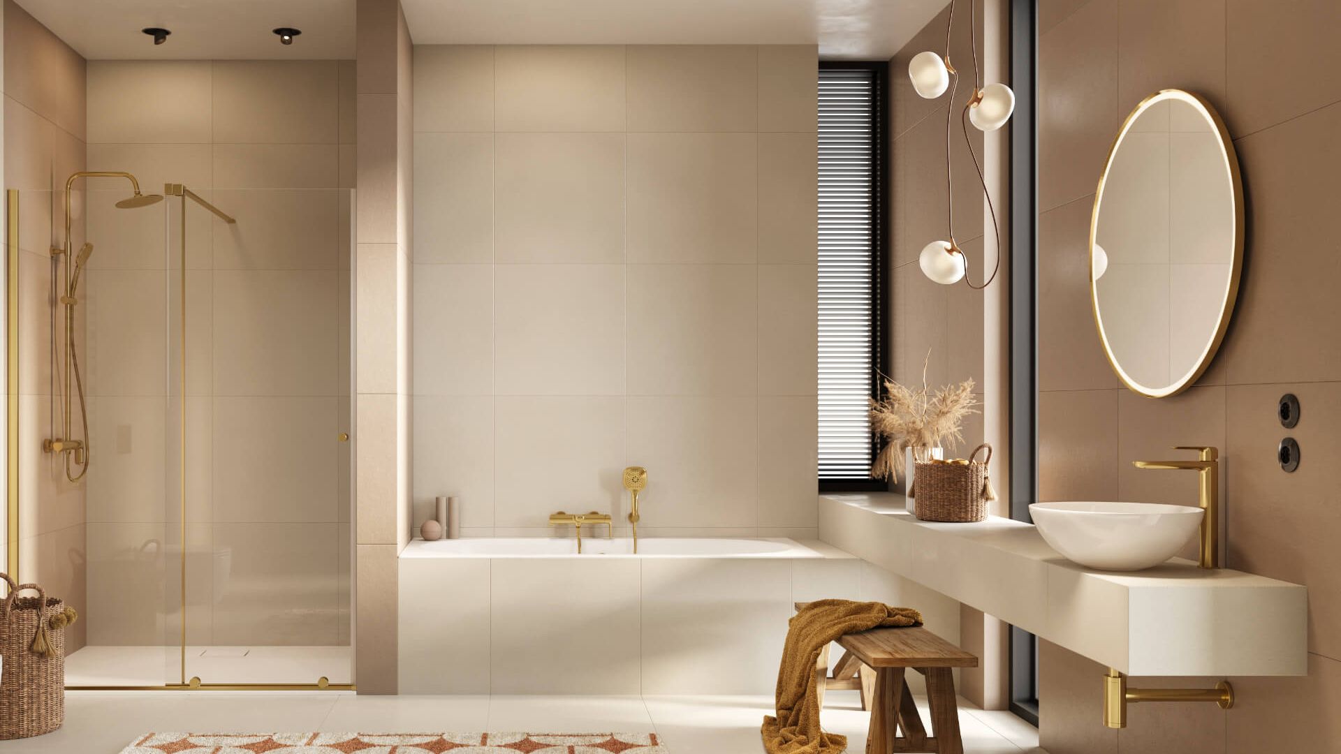 Dostępne są w czterech modnych kolorach ramy: czarny mat, złoty połysk oraz zyskujących na popularności szczotkowanych wersjach kolorystycznych: złotej i miedzianej, które znajdują zastosowanie zarówno w nowoczesnych łazienkach, jak i tych w stylach klasycznym i retro.