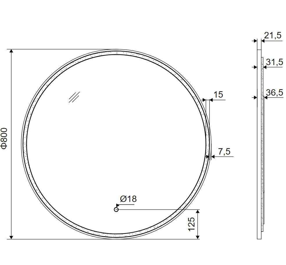 Pod aluminiową ramą, z tyłu lustra znajduje się akrylowa osłona, gwarantująca delikatne, jednolite rozproszenie światła, bez widocznych na ścianie pojedynczych punktów diod LED.