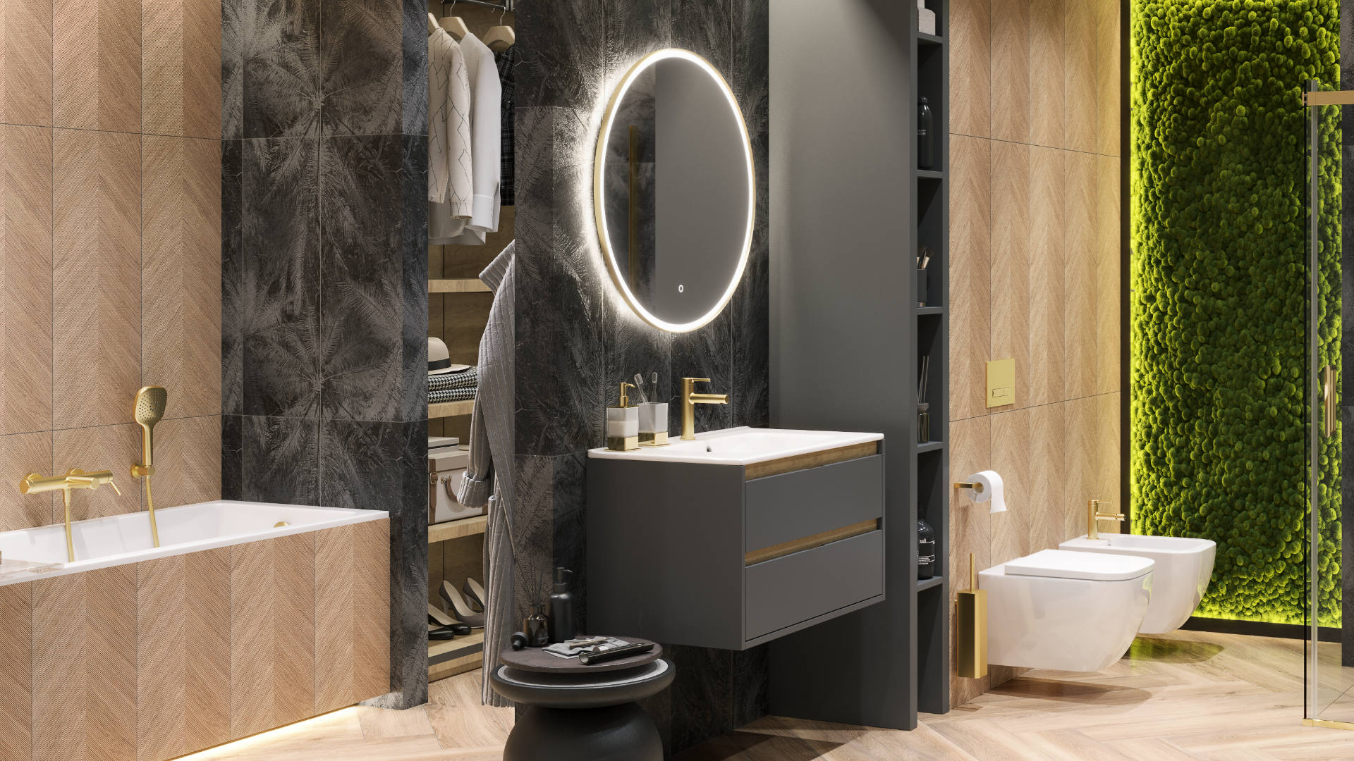 Dostępne są w czterech modnych kolorach ramy: czarny mat, złoty połysk oraz zyskujących na popularności szczotkowanych wersjach kolorystycznych: złotej i miedzianej, które znajdują zastosowanie zarówno w nowoczesnych łazienkach, jak i tych w stylach klasycznym i retro.