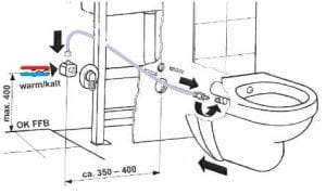 Miska jest bez kołnierzowa i pasuje do wszystkich uniwersalnych stelaży. Wystarczy podciągnąć ciepłą i zimną wodę, lub tylko zimną i można korzystać z higienicznej funkcji bidetu w klasycznej misce WC. Proste, funkcjonalne i niezawodne rozwiązanie dzięki, któremu możesz cieszyć się korzystaniem z bidetu nawet jeśli nie masz na niego miejsca!