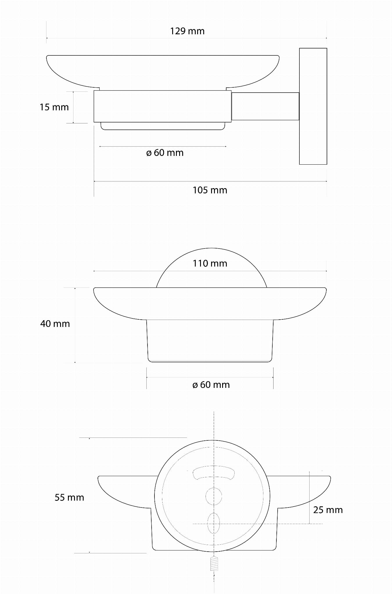 Mydelniczka 110x55x129 mm, wiercenie/klejenie, złoty mat X-ROUND GOLD