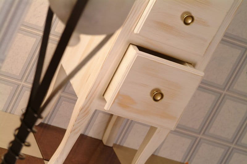 Ciemne meble są wykonane z drewna bukowego, jasne ze świerkowego.