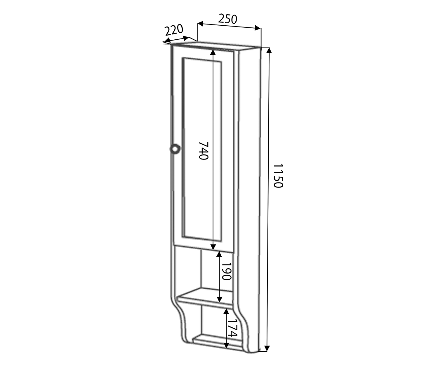 RETRO szafka do lustra 25x115cm, starobiała, lewa