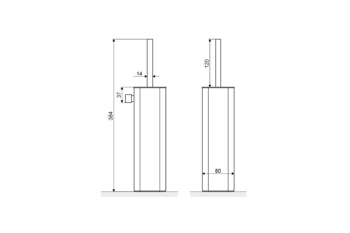 Szczotka WC wolnostojąca również mocowana do ściany RIKO składa się z metalowego pojemnika, szczotki w kolorze czarnym z uchwytem oraz elementu mocującego do ściany.