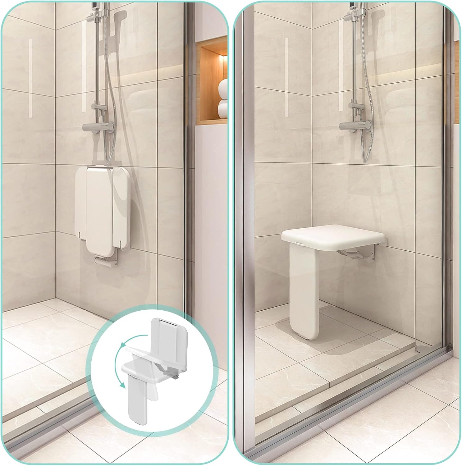Otwórz go bezpośrednio przed siedzeniem i po prostu złóż po użyciu. Krzesło łazienkowe jest praktyczne i dekoracyjne, a jego klasyczny biały design pasuje do każdej nowoczesnej łazienki. Podczas użytkowania można położyć na siedzeniu matę antypoślizgową lub ręcznik, aby zapobiec poślizgowi.