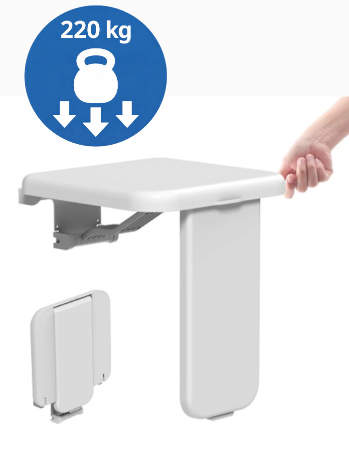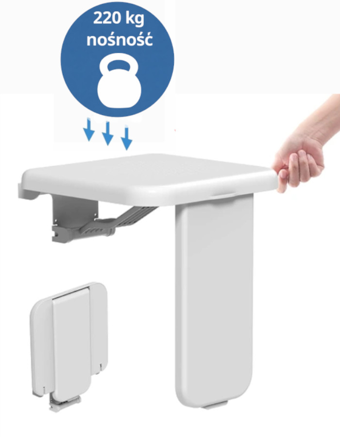 Składane Siedzisko Prysznicowe - Taboret prysznicowy o nośności 220 kg jest bardzo odpowiedni dla osób starszych i dorosłych.