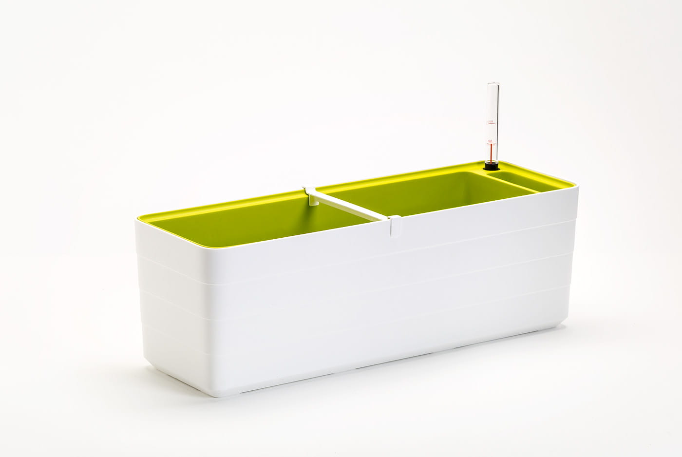 Dzięki zastosowaniu podwójnej ścianki, ziemia w skrzyni nie przegrzewa się - pojemnik z ziemią jest umieszczony w obudowie o większym rozmiarze.