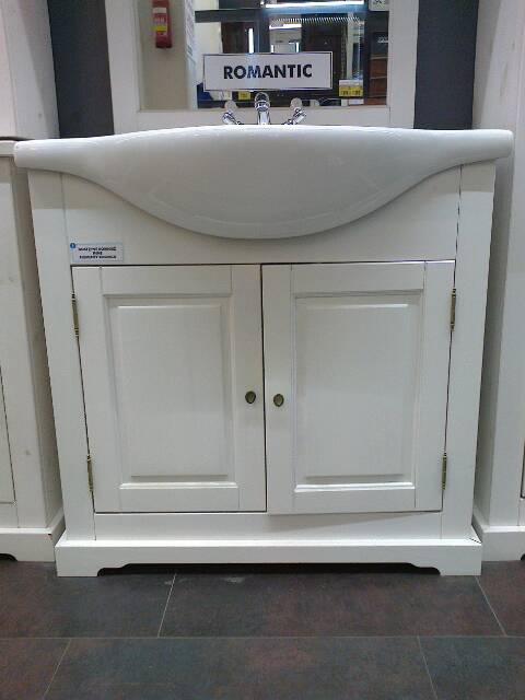 Szafka 85x8132 cm z umywalką białe drewno , ROMANTIC