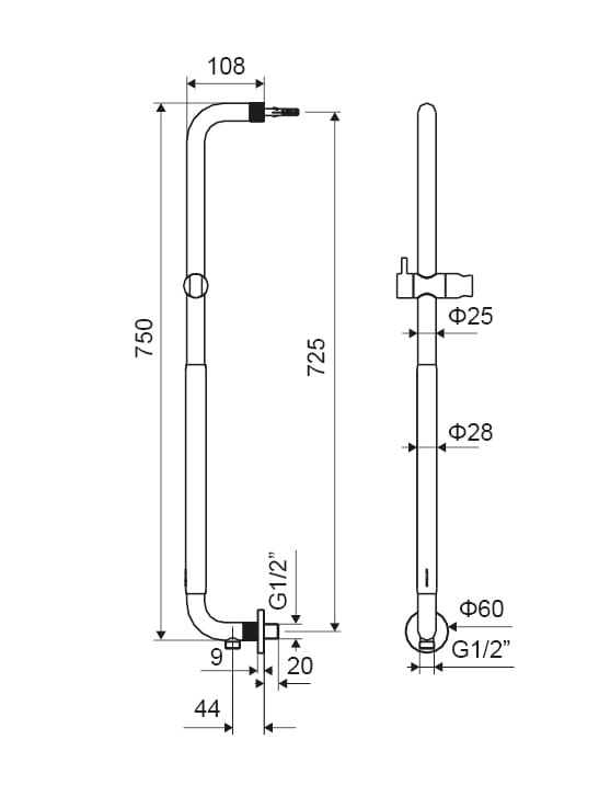 UCHWYT ŁAZIENKOWY PRYSZNICOWY 73 cm/200 kg Z PRZYŁĄCZEM WODY CZARNY/CHROM, HENDI