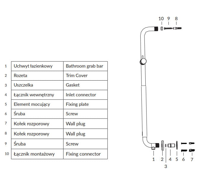 UCHWYT ŁAZIENKOWY PRYSZNICOWY 73 cm/200 kg