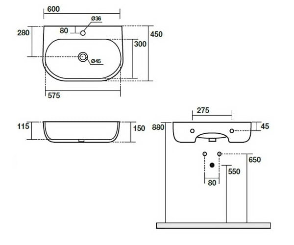 UMYWALKA 60x45 CM NABLATOWA/PODWIESZANA