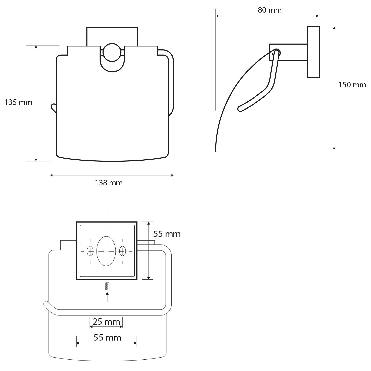 Uchwyt na papier toaletowy138x150x80 mm z klapką ; wiercenie albo klejenie , chrom X-SQUARE