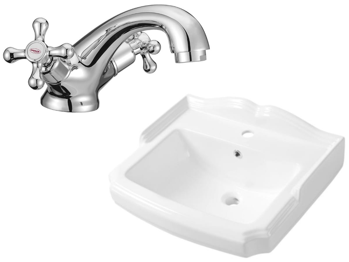 Umywalka 58x47 cm zawieszana na ścianie + bateria chrom + korek , ANTIK RETRO