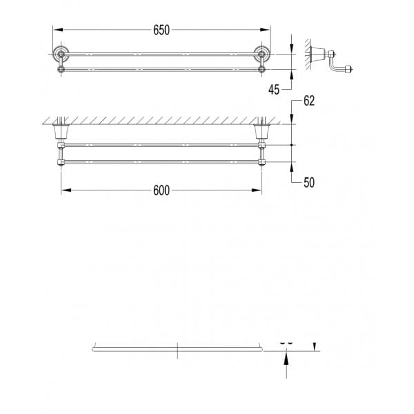 Wieszak na ręcznik podwójny 65 cm chrom,Art Line