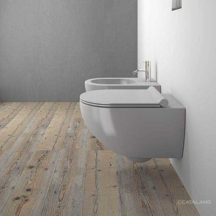 Wisząca miska WC 54x35 cm bez kołnierza z deską wolnoopadającą ,Cement satynowy Catalano COLORI