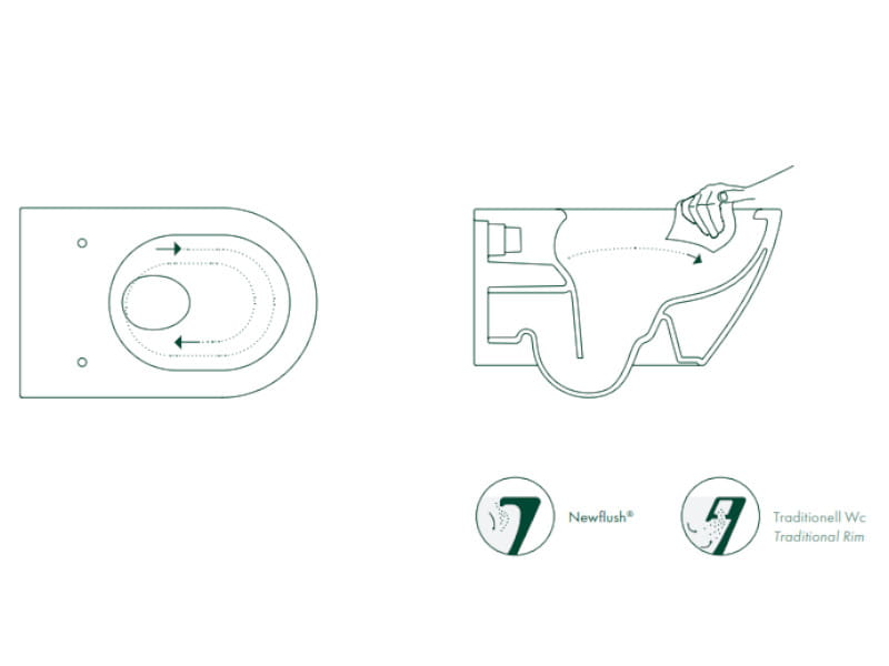 Toalety z systemem Newflush® i błyszczącym wykończeniem w środku Cataglaze® ,satynowe na zewnątrz.