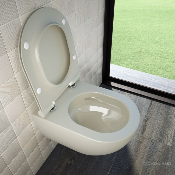 Wisząca miska WC 54x35 cm bez kołnierza z deską wolnoopadającą ,Satynowy szary Catalano COLORI
