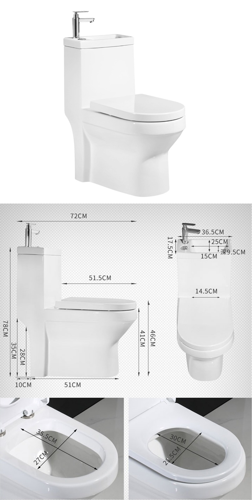 Umywalka zamontowana nad zbiornikiem dodatkowo oszczędza wodę, która podczas mycia rąk spływa do zbiornika aż do momentu, gdy jest pełny. Nadmiar wody następnie spływa do misy.